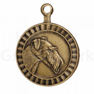 Airdale terriër bronzen rashondenpenning, geleverd met messing sleutelring.