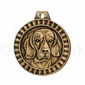 Beagle bronzen rashondenpenning, geleverd met messing sleutelring.