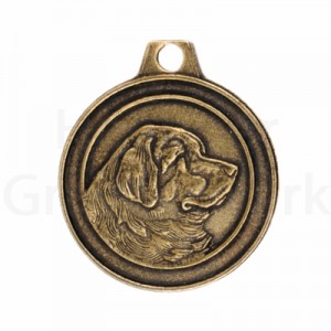 New foundlander bronzen rashondenpenning, geleverd met messing sleutelring.