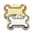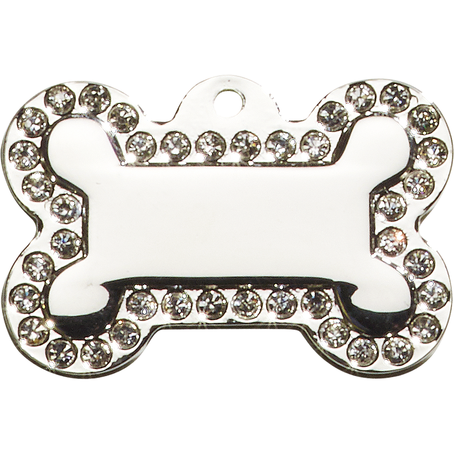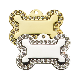 Penning in de vorm van een honden bot vzv een rand met diamantjes.Formaat penning 36x25mm