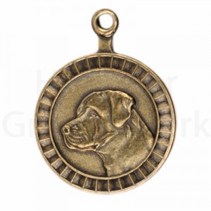 Rottweiler bronzen rashondenpenning, geleverd met messing sleutelring.