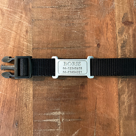 Rubberen halsbandplaat klein voor gebruik aan smalle riem tot ca. 20 mm. breedte